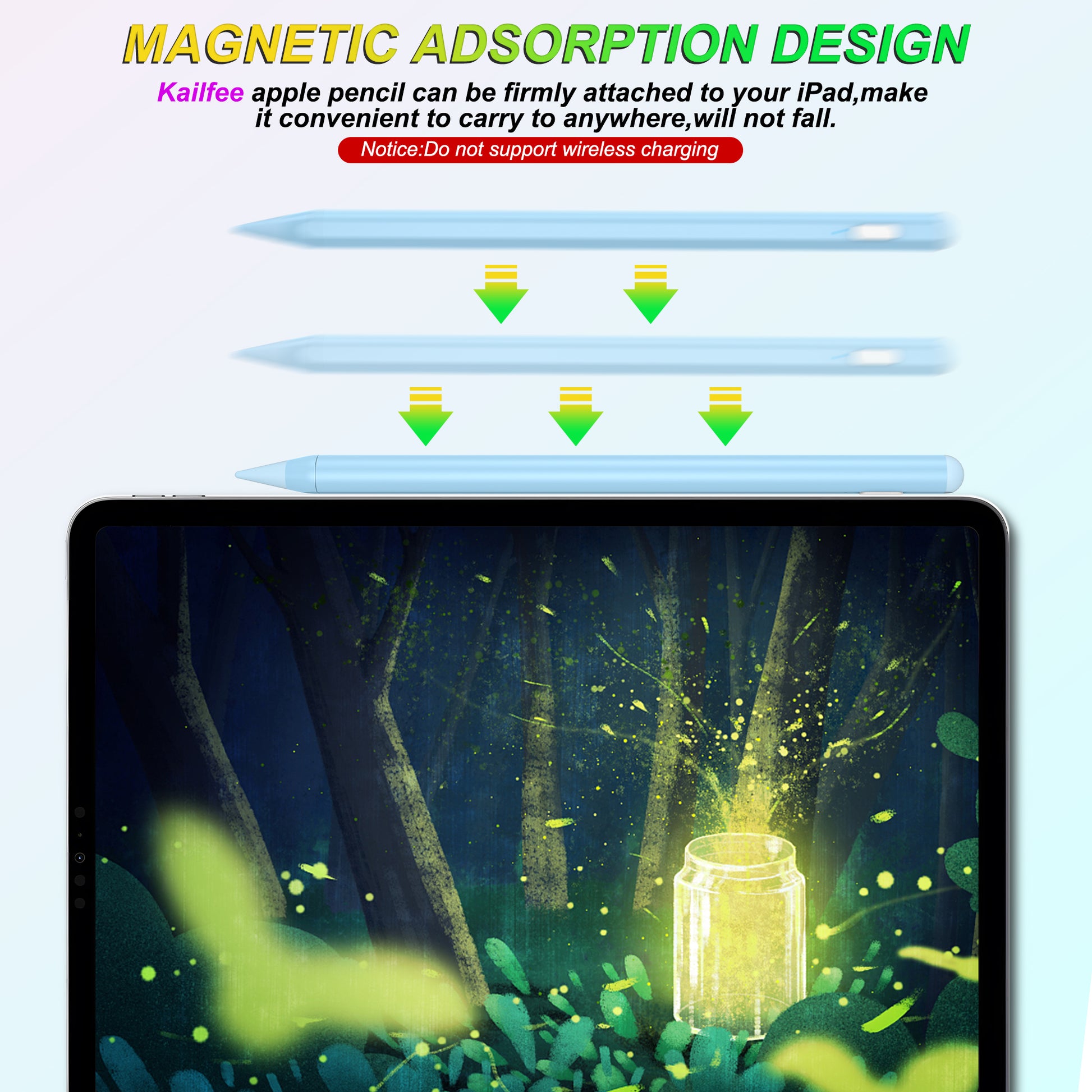 - [ Palm Rejection & Magnetic Absorption ]- Kailfee apple pen with palm rejection technology allows you to rest your hand comfortably on the iPad screen without glove, more naturally to write and draw just like on paper. Magnetic design makes it can attached to the side of iPad, so it won't rolling or losing when you need to rest, more convenient to use and organize.