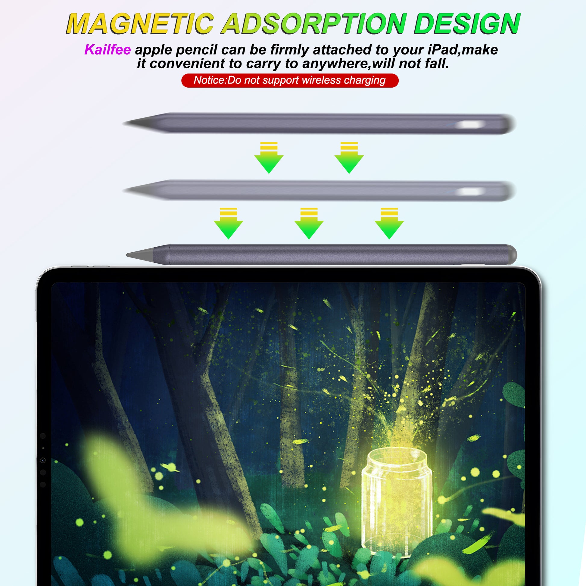 - [ Palm Rejection & Magnetic Absorption ]- Kailfee apple pen with palm rejection technology allows you to rest your hand comfortably on the iPad screen without glove, more naturally to write and draw just like on paper. Magnetic design makes it can attached to the side of iPad, so it won't rolling or losing when you need to rest, more convenient to use and organize.